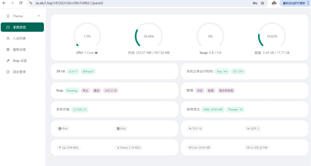 Xray面板的这些功能使得它成为搭建和管理代理服务器的理想选择,特别适用于需要高效管理和安全控制的场景。